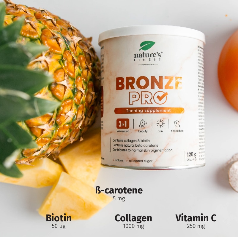 Jah. Pärast 25. eluaastat hakkab keha loomulik kollageeni tootmine vähenema, mis mõjutab naha, juuste ja küünte tugevust. Bronze PRO sisaldab kollageeni – naha, juuste ja küünte peamise koostisosa – ning olulisi vitamiine nagu biotiin (B7) ja E-vitamiin.