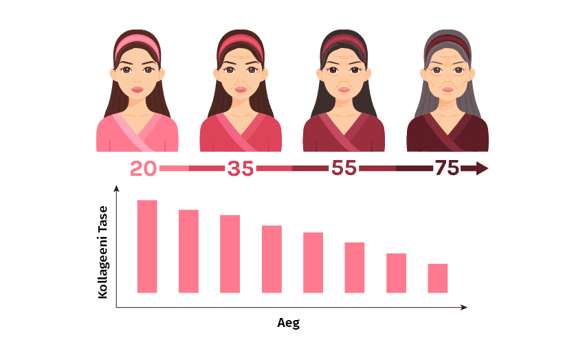 Alates kahekümnendate eluaastate keskpaigast väheneb keha loomulik kollageeni tootmine järk-järgult – see on normaalne vananemisprotsessi osa. Kollageeni tase langeb umbes 1% aastas, kusjuures langus on suurem enne ja pärast menopausi.