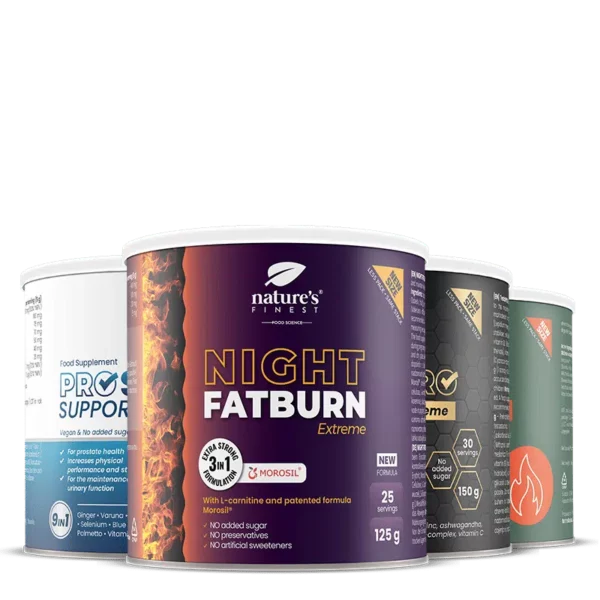 Koostisosad: inuliin, magusaine: eritritool, C-vitamiin (askorbiinhape), maasika maitse, stabilisaator: tselluloos, saw palmetto puuviljade ekstrakt (Serenoa repens), varuna koore ekstrakt (Crataeva nurvala), nõgese lehtede ekstrakt (Urtica dioica), ginseng ekstrakt (Panax ginseng), tsinkglükonaat, ingveri pulber (Zingiber officinale), sinise spirulina ekstrakt (Arthrospira platensis), magusaine: stevioolglükosiid, naatriumselenit.