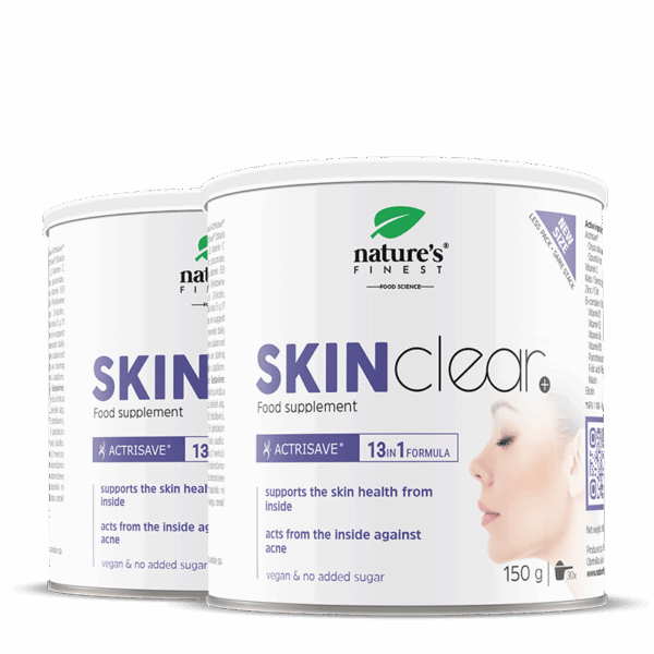 SKINclear+ ühendab tõhusad koostisosad, mis toimivad akne vastu seestpoolt¹, toetavad naha tervist seestpoolt¹ ja aitavad reguleerida hormooni aktiivsust³.